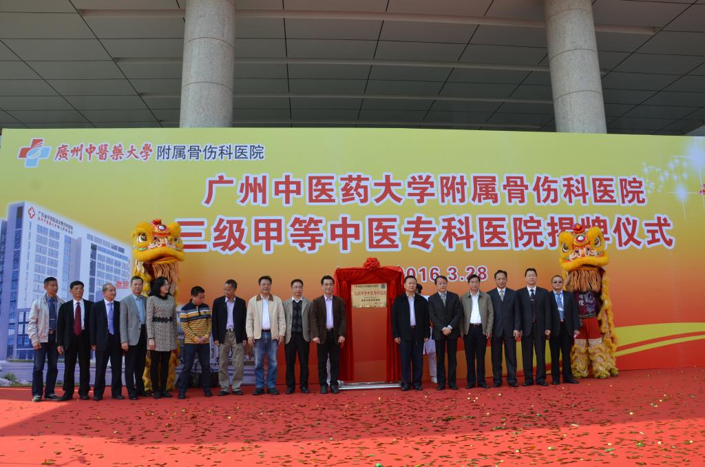 3月28日上午,和风送暖、春意盎然,广东省卫计委主任陈元胜、省中医药局副局长柯忠及我校校长王省良、党委副书记陈英华等共同为beat365官方网站第三附属医院(附属骨伤科医院)“三级甲等中医专科医院”揭牌。
