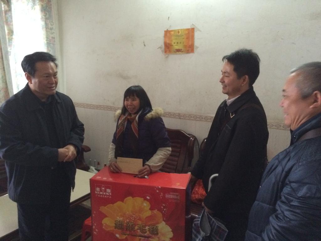 1月22日,学校党委书记黄斌带领校党委组织部、财务处负责同志和干部代表前往我校扶贫开发“规划到户责任到人”对口帮扶点清远市阳山县大崀镇大崀村调研慰问。阳山县副县长甘秀珍、阳山县卫计委局长蔡喜刚、大崀镇镇长兼党委副书记谢峻岭及我校驻村干部黄志辉等陪同调研慰问。