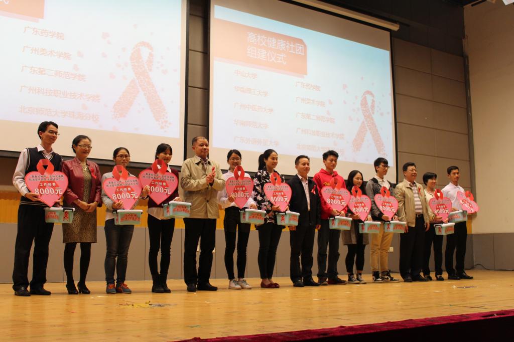 活动中,主办单位领导向包括我校在内的全省10所高校的“青春红丝带”高校健康社团代表颁发了社团组建经费及健康包,鼓励与支持更多的高校健康社团及大学生参与到防艾工作中来。