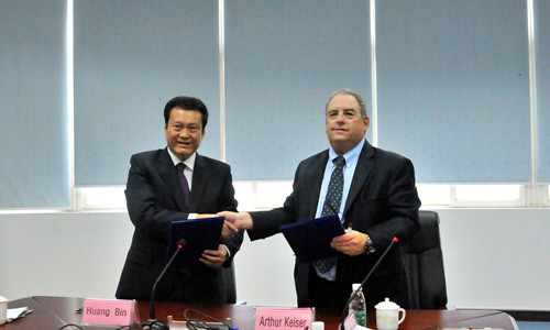 黄斌对凯泽大学代表团表示热烈的欢迎,并向Arthur Keiser校长介绍了我校中医药教育、科研的基本情况和发展战略。凯泽大学校长Arthur Keiser表示,希望通过建立中美中医药教育研究中心,建立良好的合作关系,开展人才培养、学术研究等合作项目,促进两校间的共同进步。