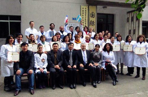 11月24日-12月5日,在智利拉丁美洲中医学院院长Luis Pedreros先生带领下,32名来自智利、阿根廷、哥伦比亚以及葡萄牙的学生在我校进行了为期两周的针灸推拿课程培训。经过两周的学习,学生普遍表示,无论是课堂上的研习还是医院里的临床实践,都让他们大开眼界,看到了很多从未遇过的病例和治疗方法,并得到了医生和老师的耐心指导,从而获得了丰富而特别的体验,希望下次有机会能再来学习。