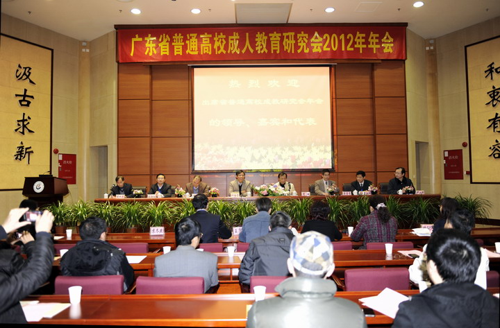 2013年1月11日,由我校承办的广东省普通高校成人教育研究会2012年年会在大学城办公楼学术报告厅隆重召开。来自全省36所普通高校成人(继续)教育学院、广东省成人教育协会的代表及特邀嘉宾共计100多人参加了会议。许能贵副校长出席了开幕式并致辞,广东省成人教育协会副会长兼秘书长李洪应邀出席了会议并讲话。