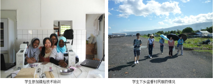 自9月5日到达科摩罗之后,人文学院的实习生积极参与疟疾防治组的各项工组,其中包括:参加镜检技术培训和相关知识课程、前期物资准备、库存清点核算、疟原虫带虫率调查、蚊媒带虫率(对照区与项目启动区)调查、全民服药开始后定期下乡监督抽查发药员的发药及村民服药情况、回收服药登记表、数据统计登记录入等。目前,4名实习生工作、生活、学习等各方面情况良好。