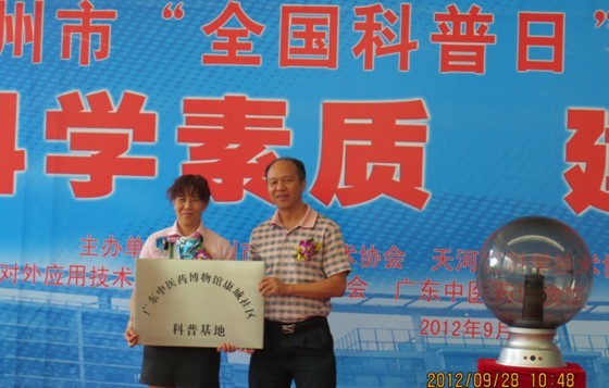 9月28日,广东中医药博物馆首个社区科普基地在广州市天河区黄村街中海康城社区落成,广州市委书记万庆良、市长陈建华莅临视察,肯定了博物馆将科普知识送到社区的做法。