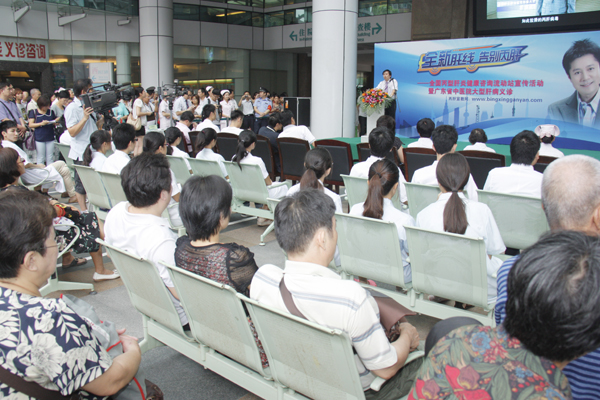 8月4日,由卫生部疾病预防控制局指导、中国健康教育中心(卫生部新闻宣传中心)主办的"全新‘肝'线,告别丙肝——全国丙型肝炎健康咨询流动站宣传活动"的大巴车停靠我校二附院,为市民进行丙肝健康咨询及科普教育,免费为有需要检测的市民进行了丙肝抗体检测,二附院还同时举行了大型的肝病义诊活动。全国肝炎防治宣传形象大使、著名歌手蔡国庆专程来到现场并讲述了他参与丙肝健康咨询活动的感受。