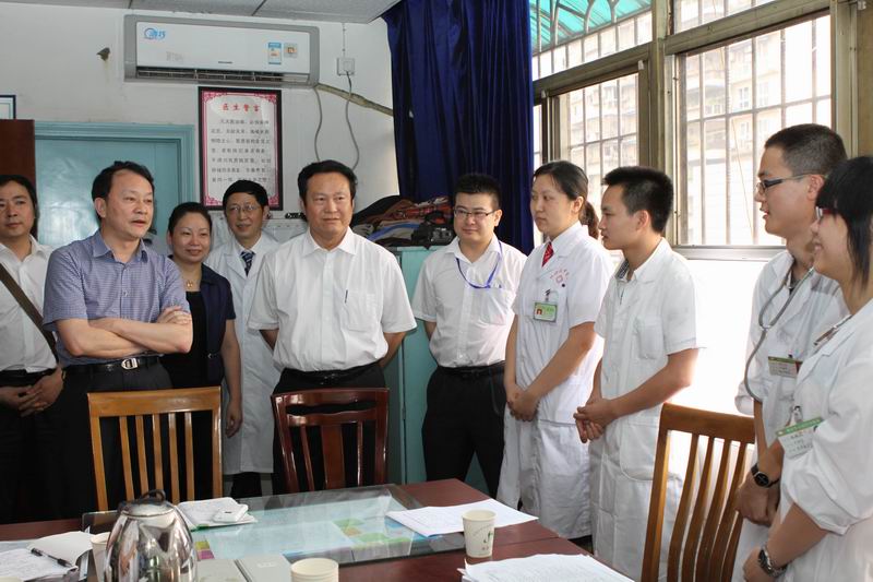 会议期间,黄斌书记和王省良校长及有关职能部门负责人考察了附属重庆北碚中医院,并与医院领导就医院建设与发展及加强临床教学工作进行了座谈,广泛深入地交换了意见,还专程看望了在北碚中医院教学实习的同学们,勉励同学们要抓住临床实践的机会认真学习,练好临床诊疗的基本功。参加会议的学校第一临床医学院专家丁有钦、郑泽棠教授对北碚中医院教学查房进行了现场指导。