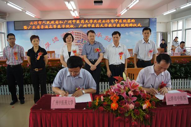 5月29日上午,我校与云浮市共建云浮市中医院签约暨教学医院挂牌仪式在云浮市中医院举行。省中医药局副局长李梓廉、学校校长王省良、副校长许能贵、云浮市人大常委会副主任罗立旷、云浮市副市长王莉莉、云浮市政协副主席何婧以及云浮市相关政府部门和校长办公室、教务处的负责人出席了签约仪式。
