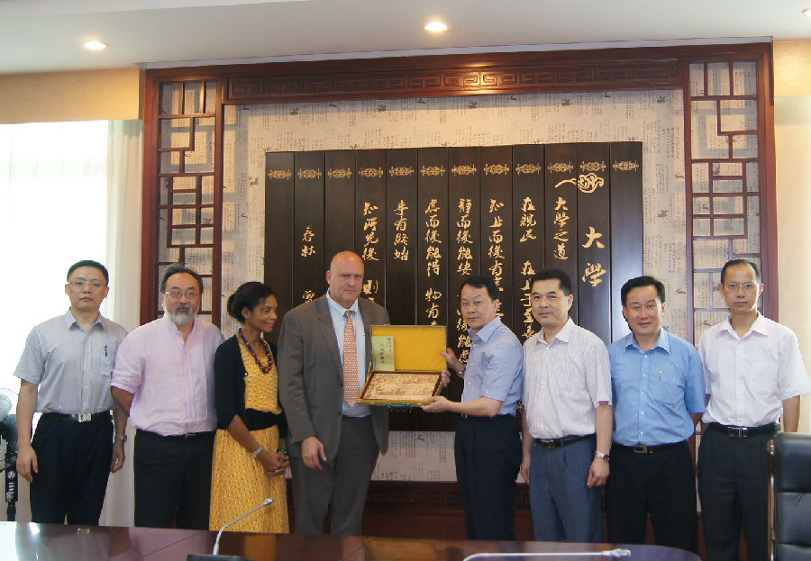 5月17日上午,王省良校长在大学城校区会见了到访的法国发展研究院健康部主任Herve TISSOT DUPONT 、亚太区代表Regine LEFAIT-ROBIN博士和艾滋病研究中国区主任LU WEI教授。会见中,王省良校长介绍了我校的基本情况,对双方艾滋病合作研究和博士研究生联合培养工作表示了肯定,并向法国客人赠送了礼物。会见结束后,法国客人参观了广东中医药博物馆和二附院(广东省中医院)大学城医院。 参加会见的有林辉、陈冠林、符林春、张壮涛、熊学军等。