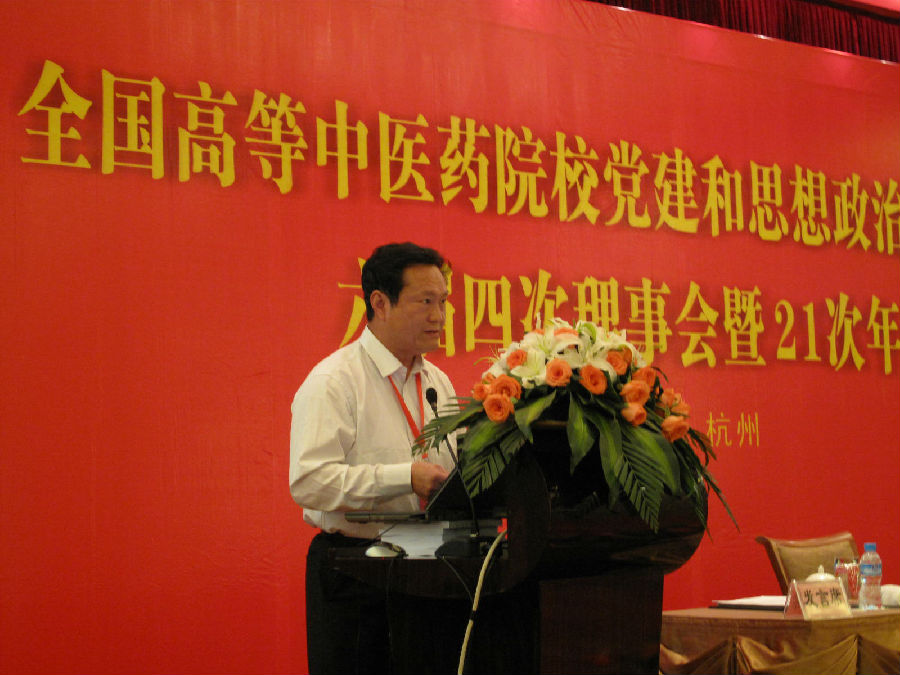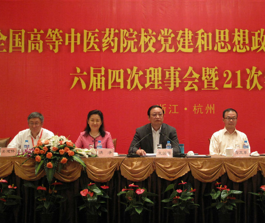 5月17日,全国中医药院校党建和思想政治工作研究会六届四次理事会暨21次年会在浙江杭州召开。 卫生部副部长、国家中医药管理局局长王国强,教育部思政司副调研员俞亚东,国家中医药管理局人事教育司巡视员、副司长、全国中医药高等教育学会理事长洪静出席会议并作报告,我校党委书记黄斌作大会发言。来自全国26所院校的81位代表莅会。