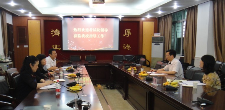 4月14—15日,2012年全国港澳台研究生入学考试在我校顺利进行,广东省考试院孔智军副院长莅临考点检查督导考务工作。考点主考、郭姣副校长高度重视,召开考务部署工作会议,并带领研究生处、外事处、纪检和保卫处等相关职能部门负责人对考场进行了巡视。郭副校长要求相关部门要坚决贯彻执行上级文件精神,在"公平、安全、有序、优质"的原则下,严格执行考场纪律、切实规范考务工作程序,确保考试安全,圆满完成本年度考点考务工作。考试过程中,监考人员认真履行监考守则,考场秩序良好。