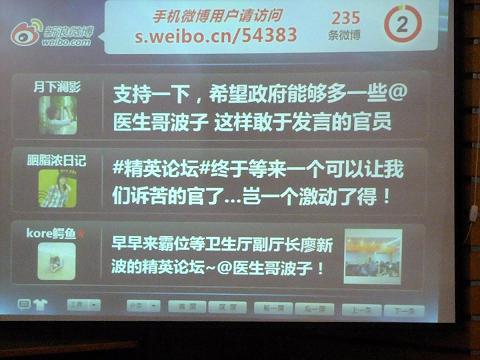 廖新波,现任广东省卫生厅副厅长,beat365官方网站客座教授,2006年涉足博客,是我国最早开博的厅级干部之一,外界称其为"博客厅长";他经常在微博上直言对热点问题的看法,游走于体制内外为百姓解答疑惑,粉丝都称他为"波子哥",一院的同学正是通过微博邀请他来到了一院的精英论坛。