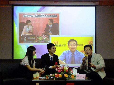论坛以访谈的形式进行,廖厅长与两名学生主持人同坐在舞台上,接受现场访问,现场的投影实时显示观众发的微博。第一临床医学院党委书记古展群、党委副书记郭文海以及学生工作办公室全体老师出席了本次活动。