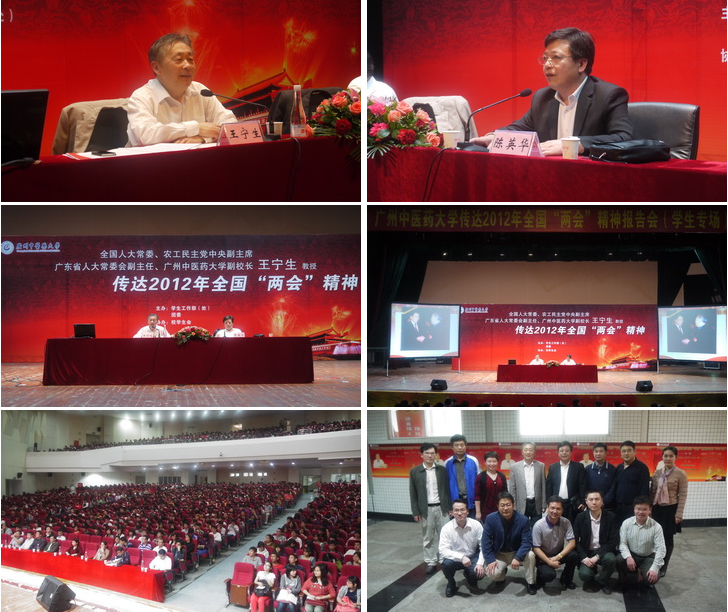 3月21日晚上,全国人大常委、农工民主党中央副主席、广东省人大常委会副主任、我校副校长王宁生教授应邀在学校大会堂为全校学生骨干传达2012年全国"两会"精神。报告会由党委副书记陈英华主持。