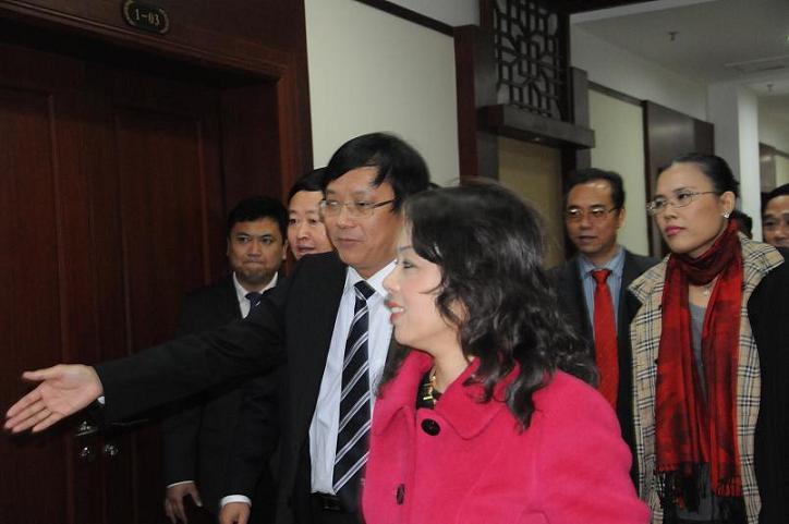 1月12日下午,越南卫生部长阮氏金进女士率团访问我校,许能贵副校长及相关部门负责人会见了部长一行并举行座谈。