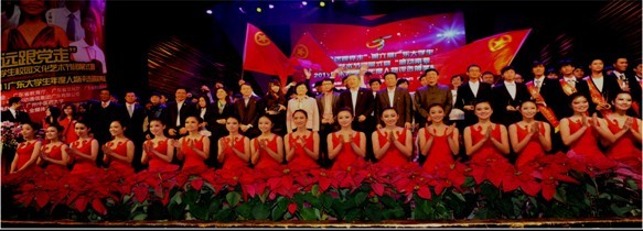 黄斌书记在致辞中指出,为贯彻落实党的十七届六中全会精神,进一步发挥高校大学文化的育人、塑人功能,以先进文化凝聚和引领广大青年学子投入幸福广东和文化强省建设,团省委、省教育厅、省文化厅、省学联联合举办"永远跟党走"第六届广东大学生校园文化艺术节,beat365官方网站能够承办闭幕式暨校园年度人物颁奖典礼,倍感荣幸!我校高度重视大学思想文化建设,在文化育人方面取得了明显的成效:一是弘扬"崇德远志、和衷有容、汲古求新、笃学精业"的广中医精神,为建设高水平中医药大学提供精神动力;二是打造具有中医药特色的志愿文化,为大学生了解社会、融入社会、服务社会提供广阔平台;三是推广校园品牌活动,极大地丰富了广大学生课余生活;四是加强校园文化建设,营造良好的育人氛围;五是坚持以师生为本,着力建设幸福校园。当今中国处在一个改革创新的伟大时代。黄书记说,当代大学生必将谱写壮丽的青春乐章,留下闪光的奋斗足迹,也必将涌现出更多为国家、为民族而拼搏奉献的优秀典型。黄书记最后强调,我们要以科学发展观为指导,勇于开拓创新,为加快转型升级、建设幸福广东做出新的更大的贡献,以优异成绩迎接广东省第十一次党代会和党的十八大胜利召开。
