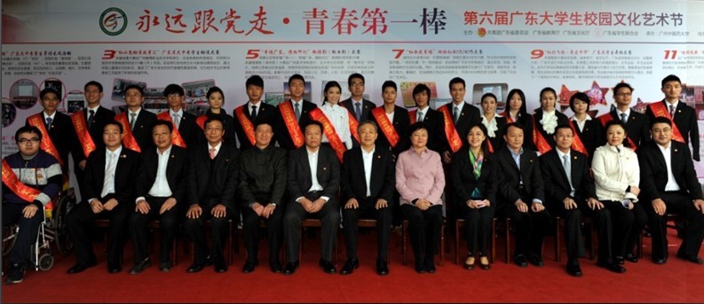 我校承办的"感动南粤校园"广东大学生年度人物评选活动吸引了全省千余名在校大学生报名参选,10多万大学生参与网络投票,邀请省人大副主任王宁生教授、中国科学院吴硕贤院士担任主任评委。分别在爱心、志愿、自强、菁英、博学、科技、环保、艺术、体育、创业等方面评选出共10位年度人物及10位提名奖。他们经历不同,但他们都拥有震撼人心的人格力量;他们在平凡的世界中书写着自己的精彩人生,铸就了高尚的品行;他们的故事值得我们身边的每一个人去细细聆听,他们是百万大学生中平凡的一部分,却值得我们去记住他们的名字。该活动通过树立先进标杆,凝聚和引领广大青年学生向上、向善、向美、向真,号召广大青年学生以实际行动肩负起建设"幸福广东"和"文化强省"的历史使命。