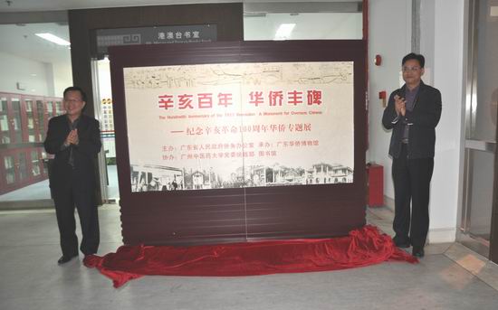 为纪念辛亥革命100周年,11月21日下午, 广东省人民政府侨务办公室和广东华侨博物馆主办的《辛亥百年华侨丰碑》图片展在我校图书馆三楼艺海堂开幕和展出。副校长刘晟和省侨办副主任郑建民为展览揭幕,学校各党群部门和部分二级学院党委负责人出席了开幕仪式。