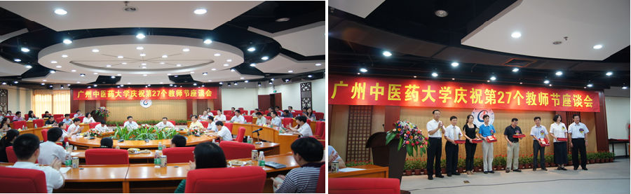 徐志伟校长首先代表学校致辞,向全体教职员工致以节日的问候和诚挚的祝福。他简要回顾了建校55年来学校在人才培养、科学研究、社会服务及文化传承创新等各个方面取得的发展和进步,感谢几代广中医人的耕耘和奉献,他深情地指出:"立校之基在于教师、兴校之本也在于教师、强校之依还是在于教师"!要求全校上下继续提升内涵,进一步强化质量立校意识;加强教师培养培训,切实推进人才强校战略;希望全体教师爱岗敬业,立德树人,塑造良好的师德师风,成为学生健康成长的指导者和引路人,为创建高水平中医药特色大学而努力奋斗,为中医药事业的振兴发展再立新功。