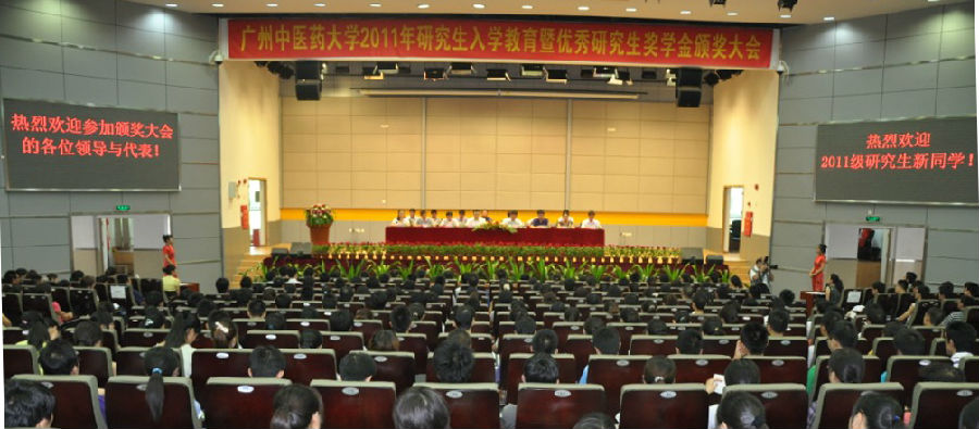 会上,校长徐志伟教授作了题为"创新理念、培育英才"的讲话,徐校长在讲话中回顾了近年来学校学位与研究生教育取得的标志性成果,再次强调研究生教育工作在全校整体事业发展中的重要地位,要求广大新生要珍惜机会,刻苦学习,坚持创新,坚定信念,承担使命,创造佳绩。学校党委黄斌书记代表学校领导向获得2011年研究生奖助学金的优秀学生以及出资设立奖学金的专家教授、企业代表表示了祝贺和感谢,全面肯定了我校学位与研究生教育工作,结合胡锦涛总书记在清华大学百年校庆讲话中的重要指示,向全体新入学研究生提出"树立远大理想,提高自身素质;肩负历史使命,坚持传承创新;积极投身实践,促进全面发展"的三点希望,要求大家立志为推进中医药事业发展、实现中华民族伟大复兴做出贡献。