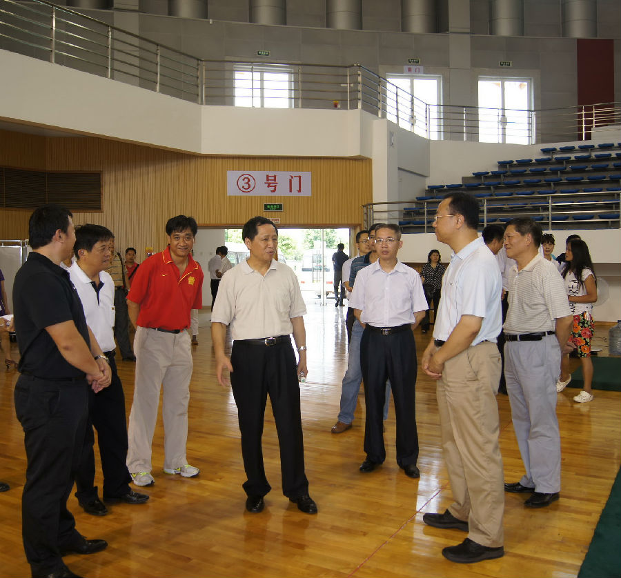 8月18日上午,省教育厅厅长罗伟其一行来到我校,视察第八届广东省大运会武术比赛场地筹备工作情况。学校徐志伟校长、林培政副校长、校长办公室林辉主任和体育健康学院宋述财书记、李兆伟副院长等陪同视察。