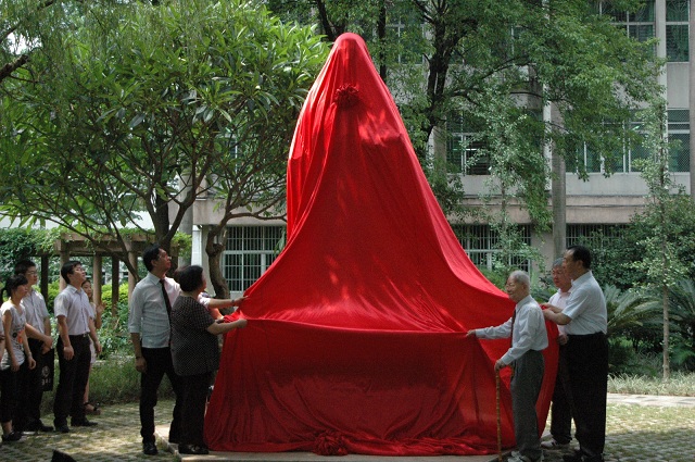 6月13日上午,三元里校区医圣张仲景雕像落成典礼举行。国医大师邓铁涛教授、校长徐志伟、台湾张仲景文教基金会张吴兰英、张书陆先生、张宏运博士出席了落成仪式。 校长徐志伟在致辞中,向文教基金会创会董事长张步桃教授及家人致谢,感谢他们在学校捐建医圣张仲景雕像。雕像历时一载,终于圆满落成,基座正面是邓老亲笔题写的"医圣张仲景像",雕像及基座浑然一体,凝聚了海峡两岸的医学家对医圣张仲景的敬仰和对我校师生的期望,成为学校一道亮丽的风景,为校园增添了浓郁的人文气息。 台湾张仲景文教基金会执行长张宏运博士发言说,弘扬仲景医学是其父张步桃教授毕生的心愿和事业,张仲景雕像在岭南中医药的最高殿堂巍然矗立,步桃教授非常欣慰。步桃教授还在学校设立了奖学金,让家境贫寒的学子将更多的精力投入到学习中,投入到中医药事业的发展中。 国医大师邓铁涛、校长徐志伟及台湾嘉宾共同为雕像揭幕,高大的医圣张仲景汉白玉雕像呈现在一众面前,雕像掩映在翠绿丛中,斑驳的光影洒在雕像的裙裾上,医圣慈祥的目光安详地注视着书香的校园,大家情不自禁鼓掌喝彩。参加仪式的还有党委宣传部部长简福爱、校长办公室主任林辉、研究生处处长潘华峰、外事处副处长张壮涛及师生代表。