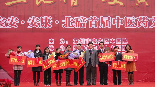 2011年1月11日,我校首届杏林研究生创新奖学金颁奖大会在深圳市宝安区举行。校长徐志伟教授、党委副书记孙晓生教授、副校长王新华教授,深圳市宝安区中医院院长林晓生教授等领导同志出席颁奖大会;研究生院与学校相关职能部门负责人,深圳市宝安区中医院全体员工及获奖学生参加颁奖大会。