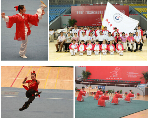 在7月29日至8月6日南京中医药大学举行的第十届全国中医药院校传统保健体育运动会上,我校代表团勇夺六枚金牌,斩获保健功法和女子团体双料冠军。这是我校参加传统保健体育运动会以来首次获此殊荣,实现了我校为之奋斗二十五年的梦想。中医药管理局局长王国强、江苏省有关领导和政府官员以及全国中医药院校26支队伍参加了本次盛会,我校派出的是以林培政副校长为团长、二附院伍世强副书记为副团长、黄国豪院长为总教练、李兆伟和李跃忠为教练的二十一人代表团。