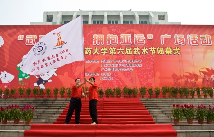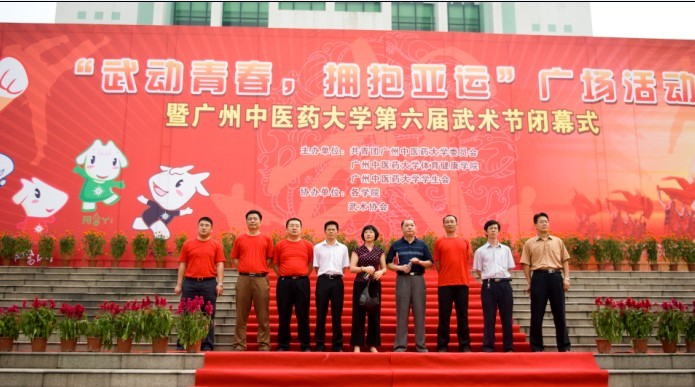 "武动青春,拥抱亚运"大型广场活动暨我校第六届武术节闭幕式于6月12日在我校大学城校区广场举行,学校相关职能部门和二级学院负责人以及3000多名学生代表参加了本次活动。 本次活动对我校第六届武术节开展情况进行了总结和颁奖。团委郝宏伟书记宣布我校亚运志愿者队伍成立,并为志愿者代表授旗。我校2010位学生代表身着红色衣服,进行太极拳表演。 广场活动还包括龙狮队表演、武协精英武术集体表演等文艺表演和百米画廊展、历届武术节风采摄影展、亚运知识擂台赛、各高校武协交流会等活动。这一活动,标志着我校为期一个月的第六届武术节正式拉下帷幕。