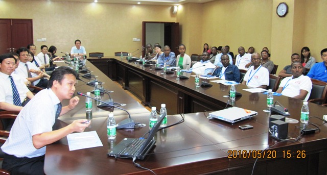 该研修班由加纳、卢旺达、塞舌尔、乌干达、津巴布韦等5国主要政党负责宣传、媒体的干部及党报和媒体负责人组成,此次来访的主要目的是听取由我校科研人员自主研发的抗疟新药在非洲的推广情况。陈英华副书记首先对客人们的来访表示热烈欢迎,并简单介绍了我校基本情况,青蒿中心负责人也为客人们详细介绍了正在非洲开展的青蒿素复方快速抗疟项目。客人们对这一项目非常感兴趣,纷纷举手提问,在有关抗疟药的预防作用、疗效及推广方式等方面提出了一系列的问题和有价值的建议,宾主双方进行了友好且深入的交流。