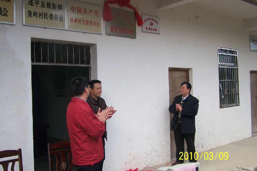 参加启动和挂牌仪式的学校和地方其他同志还有:古展群、陈文锋、林海星、裴立宁、廖晓莉、刘启德、赖小平、严晋、魏榕清、方宁、单继军、黄少瑜、游江、驻村干部、大学在贵岭村实施扶贫开发"规划到户、责任到人"的驻村联络员喻良文、镇委书记周善怀、镇长叶国仕,村两委班子成员、贫困户代表以及当地新闻媒体等同志共70余人。