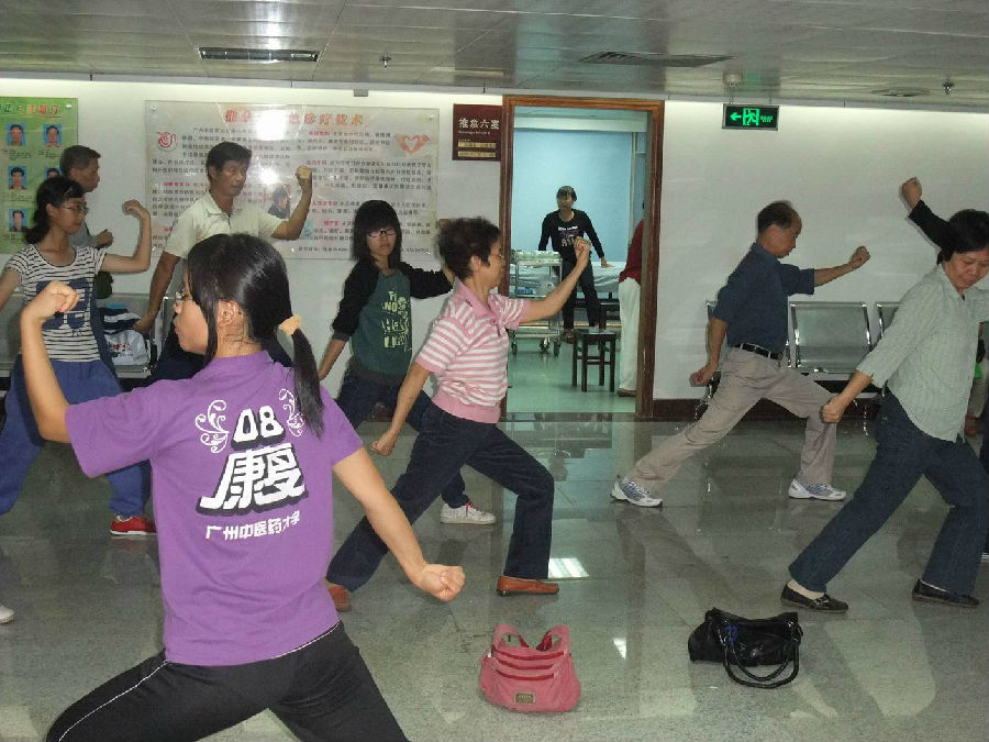 广东省防治甲流中医组副组长、我校钟嘉熙教授介绍,中医药对流感病毒具有一定的杀灭和抑制作用,甲型H1N1流感属于中医温病范畴,临床上主要以疏风清热、宣肺化湿为治疗原则,常用的中药有桑叶、菊花、桔梗、北杏、枇杷叶、薏仁、芦根、大青叶、甘草等。第一附属医院以上述药物制成预防凉茶,免费向广大市民赠饮。该院推拿科还在门诊大厅向市民免费传授"易筋经"保健功,以增强体质,防治流感。