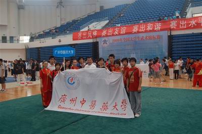 2009年8月22至23日四年一届的广东省第二届体育大会健身气功比赛在广州体育学院举行,我校健儿刘艳君、李遗敬、张宇辰、田源四位同学代表广东省教育厅大学生队参赛,在八段锦、五禽戏、易筋经的比赛中获得3枚金牌、1枚银牌、2个第四及1个第五的好成绩,展现了我校武术队精湛的技术水平和广中医学子良好的精神风貌。