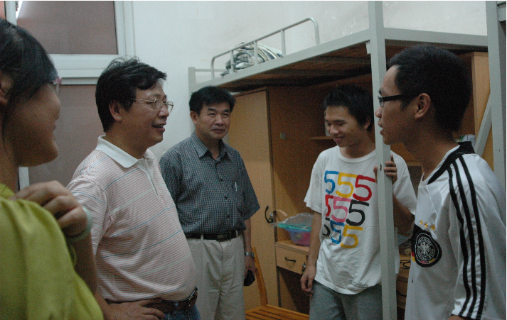 9月4日晚,校党委副书记陈英华带领部分职能部门的工作人员及二级学院主管学生工作的领导同志,一同到学生宿舍看望2009级新生。陈英华副书记与同学们亲切交谈,对新同学提出的一些学习、生活上的疑问,各职能部门和二级学院的领导同志也一一给予了解答,让新同学备感温暖。