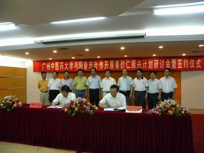 为贯彻落实科学发展观和《珠江三角洲地区改革发展规划纲要(2008—2020年)》精神,充分发挥我校科技成果、人才和信息优势,开发利用好阳春的区位、政策、资源、资金、劳动力优势,通过产学研结合,促进科技成果转化,把阳春打造成为广东省春砂仁科学研究与新产品开发的重要基地,7月1-2日,我校与阳春市人民政府合作开展"春砂仁产业振兴计划"研讨会暨签约仪式在阳春市政府会议中心隆重举行。我校孙晓生副书记、陈蔚文副校长率领科技处、中药学院、中药资源科学与工程研究中心负责人及春砂仁项目工作小组专家一行11人考察了阳春市的春砂仁产业情况,并就阳春砂产业发展与当地专家和领导进行了认真研讨,孙晓生副书记代表我校与阳春市谢兴标副市长签署了《关于beat365官方网站与广东省阳春市人民政府合作开展"春砂仁产业振兴计划"的合作协议书》。