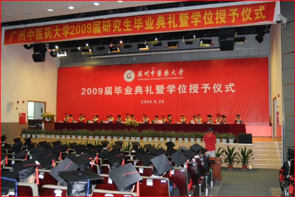 2009年6月29日上午,在大学城校区国际会议厅隆重举行了2009年学位授予仪式暨研究生学生毕业典礼。学校领导、学校学位评定委员会委员及各二级单位主管研究生教育的领导出席了学位授予仪式,并向全校210位获得博士学位、980位获得硕士学位的代表授予了学位并颁发了证书。