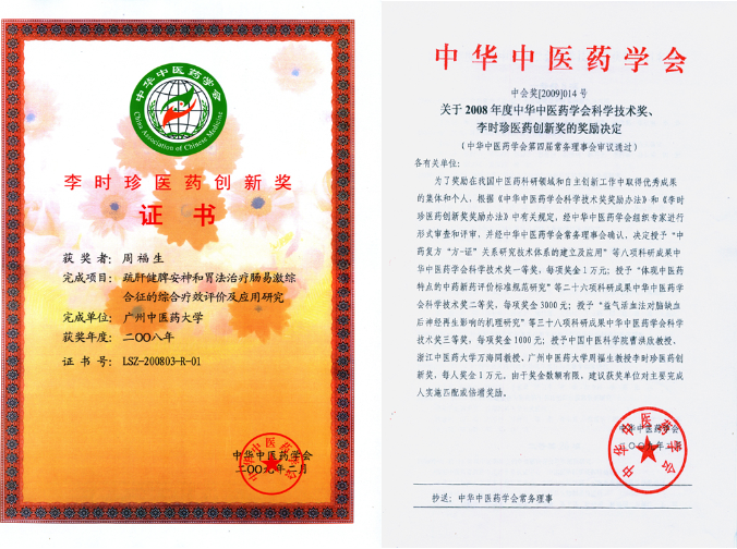 我校脾胃研究所周福生教授率领的团队一直致力于胃肠功能性疾病研究,本次获奖项目"疏肝健脾安神和胃法治疗肠易激综合征的综合疗效评价及应用研究"是我校体现自主创新、根于临床疗效的重要研究成果。