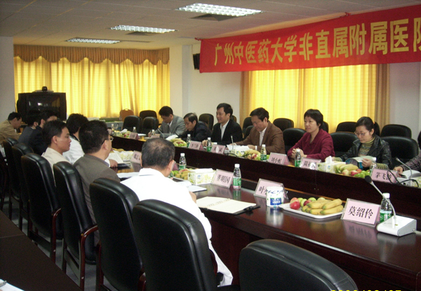 根据学校党委有关深入开展学习实践科学发展观活动的精神和要求,为切实做好学校非直属附属医院的各项工作,从今年初开始,学校党委黄斌书记、徐志伟校长、林培政副校长等校领导分别率学校相关职能部门、二级学院负责同志赴我校附属深圳中医院、附属中山中医院、附属广州中医院、附属佛山中医院、附属广东第二中医院、附属南海妇产儿童医院、附属茂名中医院、附属湛江第一中医院、附属湛江第二中医院、祈福医院、附属东莞中医院、附属台山中医院、附属新会中医院 、附属广东中西医结合医院、附属花都中医院等医院举行现场办公会。