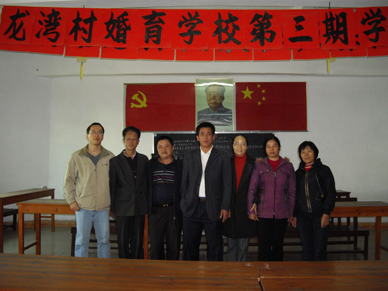 会后,支部一行来到小学走访。龙湾小学由一幢三层楼和一幢二层楼组成,校长介绍说二层楼是村里筹集10万资金前年建的,小学目前有学生500多人,教师24人,教学条件仍比较艰苦,听完介绍后党支部向小学捐赠了微波炉等物品。我们走出校长室,立刻被刚下课的学生们围住了,他们围住我们问这问那,我们被他们的热情所感染,高兴地和这些小主人们合影留念。