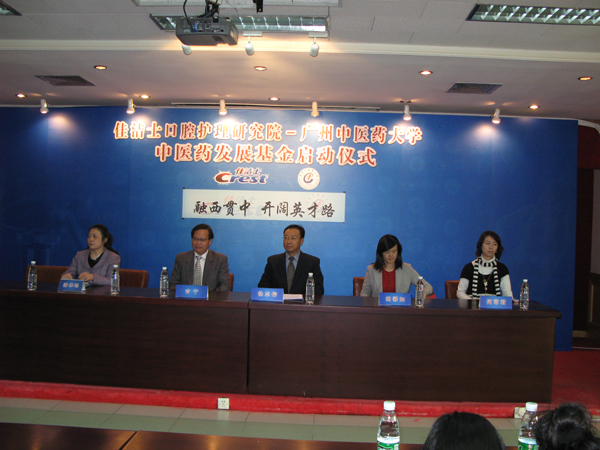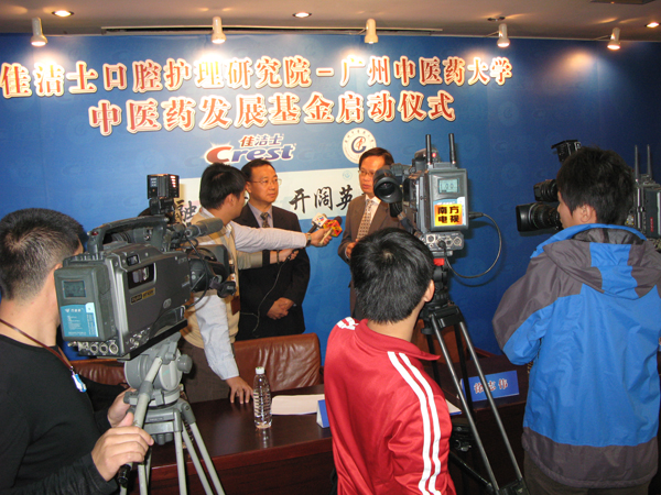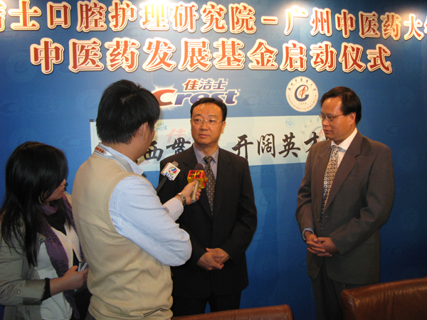 "佳洁士口腔护理研究院—beat365官方网站中医药发展基金"启动仪式由研究生处长潘华峰教授主持,大学校长徐志伟教授及佳洁士口腔护理研究院研究部总监吉宁先生、宝洁公司亚太区口腔护理品类对外关系总监胡馨如女士、宝洁公司佳洁士品牌对外关系-科技交流部经理何常君女士出席了启动仪式,启动仪式还邀请了南方电视台、广州电视台、南方日报、新快报等多家媒体参加。在启动仪式上,吉宁总监在讲话中提到成立中医药发展基金旨在提高在校研究生的创新能力,鼓励研究生树立信心、决心与恒心,努力发掘伟大的中医药学宝库,把中医药的精华引进到现代的口腔护理中,更好地为全国乃至全世界人民的健康服务;徐志伟校长在讲话中首先感谢了佳洁士口腔护理研究院在我校设立目前全球唯一的中医药发展基金,为我校广大研究生提供了良好的科学研究平台。徐校长还特别指出,作为世界著名的日化企业宝洁公司高度关注中医药事业的发展,正体现了中医药在当今世界的强大生命力,不仅为我校的中医药科研成果向企业转化提供了契机,更是学校借助世界知名企业实现强强联合、走向世界的一次创举。最后,徐校长向宝洁公司各位代表及各大媒体展示了我校学位与研究生教育的成绩,希望在校研究生充分利用好佳洁士口腔护理研究院—beat365官方网站中医药发展基金平台,刻苦钻研努力探索,学为有所成以回报企业与社会。