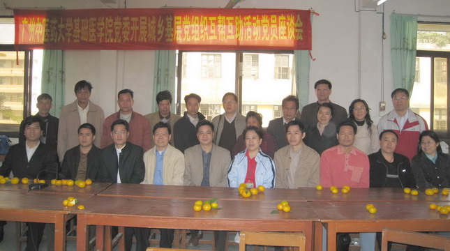 在地厚村委会,邝枣园和苏宁老师与当地党支部的部分党员进行了座谈。地厚村支部书记岑铭生介绍了村的党建、教育、经济、卫生等方面的情况。根据"城乡互助要解决群众最关心、最直接、最现实的利益问题"的精神,第四支部提出结合医学院校的专业特点,将"防治当地常见病"做为主要的帮扶对策,争取在今后三年里尽最大能力为村卫生防疫工作作出应有的贡献。当地干部对我们的互助方案表示了极大的欣喜和欢迎。