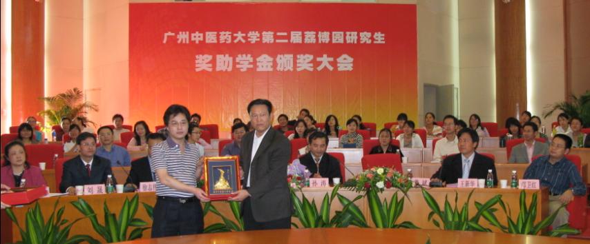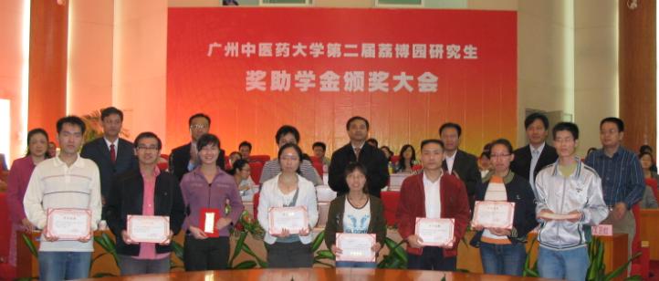 11月25日下午,在学校圆形会议举行了第二届beat365官方网站"荔博园研究生奖学金"颁奖大会。国家中医药管理局机关服务局局长孙涛、荔博园医药研究所经理黄银发,学校党委书记黄斌、校长徐志伟、副校长王新华、副校长刘晟及各二级单位领导出席了颁奖大会,并为获得奖励和资助的22名贫困优秀研究生颁发了奖状和资助金。
