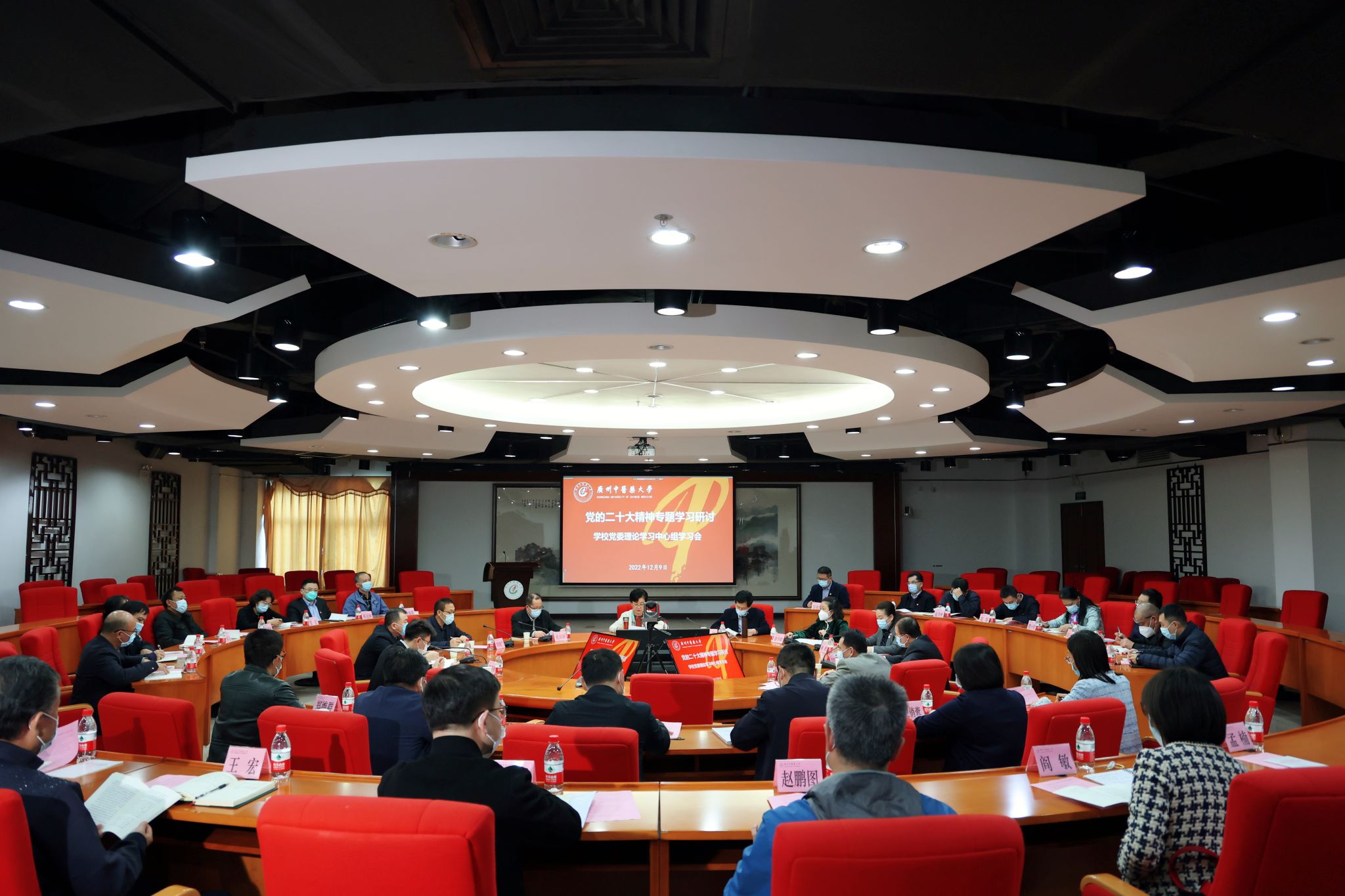 会议强调,学习宣传贯彻党的二十大精神是当前和今后一个时期的首要政治任务。学校各级党组织和全体党员要紧密团结在以习近平同志为核心的党中央周围,全面贯彻习近平新时代中国特色社会主义思想,把思想和认识统一到党的二十大精神上来,把智慧和力量凝聚到党的二十大确定的各项任务上来,一要在全面学习上下功夫,持续掀起学习宣传贯彻落实党的二十大精神的热潮,要深刻认识党的二十大的历史地位与重大意义,全面准确学习领会党的二十大精神的思想精髓、核心要义、丰富内涵和实践要求。二要在全面把握上下功夫,全方位开展党的二十大精神理论学习与研究阐释,着力营造学习贯彻党的二十大精神的浓厚氛围,凝聚起团结奋斗的强大力量。三要在全面落实上下功夫,忠诚党的教育事业,全面贯彻党的教育方针,坚定不移推进学校高质量发展。时刻牢记和践行为党育人、为国育才的历史使命,自觉履行高水平科技自立自强的使命担当,落实立德树人根本任务,聚焦“双一流”和高水平大学建设,坚定不移推进学校高质量发展,努力建设粤港澳大湾区中医药人才培养高地,踔厉奋发、勇毅前行,为中医药事业高质量发展培养更多可堪大任的优秀人才,为全人类健康事业贡献更多中医智慧和中医方案,为全面建设社会主义现代化国家、全面推进中华民族伟大复兴作出新的更大贡献。