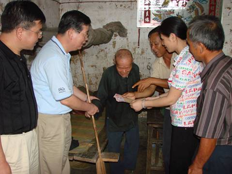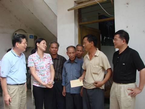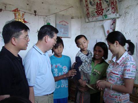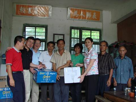 经过几个小时的长途跋涉,当日上午,在大岗镇李副镇长和程委员及我校驻村干部方振聪老师的陪同指引下,一行人终于抵达白鹤村党支部所在地,受到了该村支部委员、村干部以及10多位党员代表的热烈欢迎。随后一起到村小学召开了一次特别的组织生活会。会上,方义洁书记向党员干部传达了省委《关于开展城乡基层党组织互帮互助活动的意见》的有关精神,黄兆胜院长向白鹤村的党员干部介绍了我校和护理学院的主要情况,白鹤村的龙支书介绍了村里的基本情况和党组织建设情况,并对护理学院教师党支部不畏路途遥远来到山区农村与他们一起过组织生活,同时给他们送来知识、医药和高校党组织的关怀表示感谢。会后,护理学院党支部开展了一系列的慰问活动。在此之前,支部为落实"五个一"活动已经做好了精心的动员准备,并在党员中发动了捐款、捐药、捐物活动,筹集到一批现金、药品和文具。这次来到白鹤村,共慰问了村中10名老党员老同志,给他们每人发放了100元的慰问金和慰问品;出资500元为村委会安装防盗门窗,保护村中的农村党员远程教育终端及其它设备;给村里的卫生站送去了价值约1500元的药品,让卫生站免费派发给有需要的村民;并实地参观了村小学,给小学生送去了价值约1000元的学习用品。接着,护理学院党支部一行驱车几里路来到该村94岁老党员莫祥亿同志家中慰问。莫老同志尽管生活极为贫困,且年近期颐,但身体及精神均不错,当他得知是beat365官方网站护理学院教师党支部的干部群众来看望并慰问他时,莫老激动地举起拳头说:"党永远在关心着我们的生活,我们一定要听党的话,永远跟党走!"他还表示,尽管自己近年生活较为困难,但他从未怀疑和动摇对党信念,他坚信,党不会忘记他们这些基层群众,也一定会带领他们一步一步走向富裕……老党员的拳拳忠贞爱党之心深深地感染了在场的每一位党员同志。此后,党员们又看望和慰问了村中的一名身残志坚的贫困学生,给他送去了300元的慰问金和学习用品等,勉励他战胜病魔和困难,好好学习与生活。