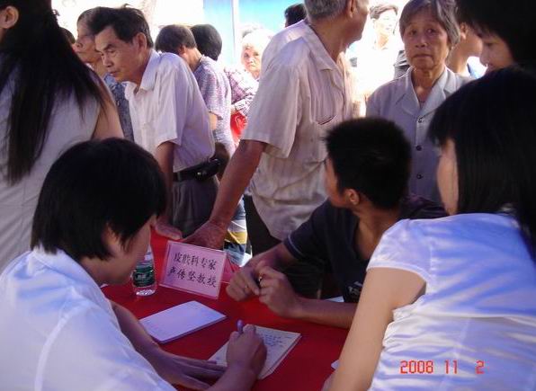2008年11月2日,民盟beat365官方网站总支组织内科、骨科、皮肤科、儿科、康复科、眼科等专科一行9名专家盟员,来到茂名化州市文化宫广场开展义诊活动。当天上午,500多位患者接受了诊疗。由于是省城来的专家,平素在广州都很难挂到号,当地的老百姓们激动不已,从早晨6时就到预定的地点排队等候。专家们也深受感动,一一给予详细诊治,并耐心告知患者的生活饮食起居等各种注意事项。