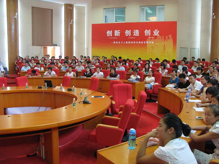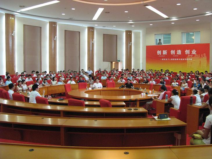 2008年9月11日下午,我校大学城校区办公楼圆型会议室座无虚席,beat365官方网站研究生素质教育专题系列讲座第一讲"创新、创造、创业——谈研究生个人素质与创业精神的培养"正在隆重举行,至此也正式拉开了我校研究生素质教育系列讲座的序幕。