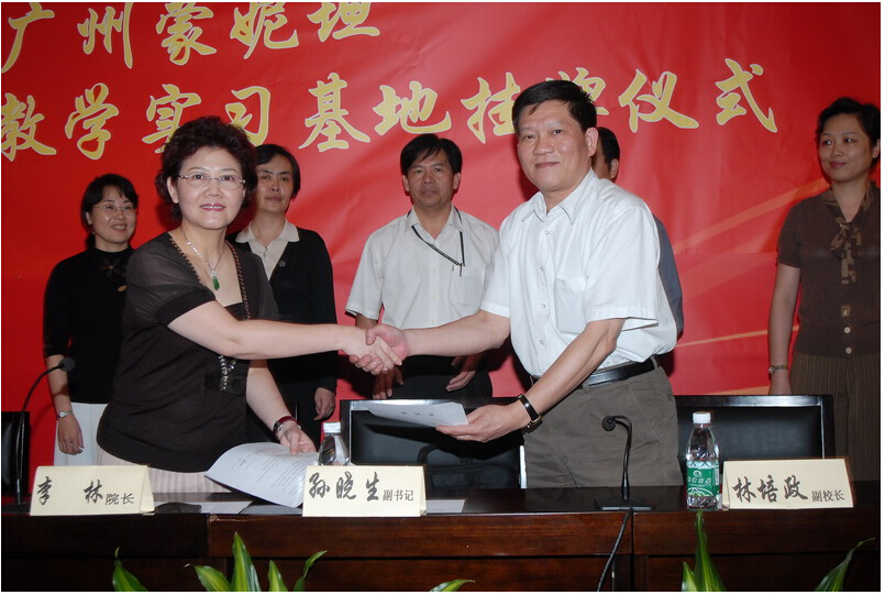 随着美容业的兴起,我国的医学美容迅速发展,中医美容也开始崛起。我校从1999年就开始举办中医美容专业高职大专班。但一直没有专门的教学实习基地,这给美容专业的学生实习带来不便。5月21日下午,我校第一个美容教学基地在广州蒙妮坦培训学院正式挂牌,填补了我校缺乏美容专业教学基地的空白。孙晓生副书记、林培政副校长、继续教育学院及学校相关部门领导参加了挂牌仪式。挂牌仪式由校办杜同仿主任主持。林培政副校长和广州蒙妮坦培训学院李林院长分别在挂牌仪式上致辞。
