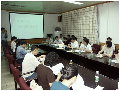 在一天半的检查中,一院、二院、三院、中药、针推、经管、护理、信息、人文、体育十个学院分管学生工作的领导分别对本学院学风建设工作进行了系统的汇报,提出了今后工作的思路及具体安排。在16日上午的总结反馈会上,林培正副校长作总结发言指出:开展学风建设检查工作是非常必要的。现在离本科评估越来越近了,我们应该用简单的办法解决问题,达到最好的效果。抓住工作重点,把教与学两方面融为一体。同时提出下一阶段的工作要求:1、在这次检查工作中发现的亮点,二级学院应及时把这些材料报学校评建办公室,并且把这些活动的支撑材料做扎实。2、学生课堂纪律问题还要进一步解决。3、理清思路,建立长效机制。4、做好学生的教育和引导工作,让学生知道建优迎评最大的受益者是学生本身。