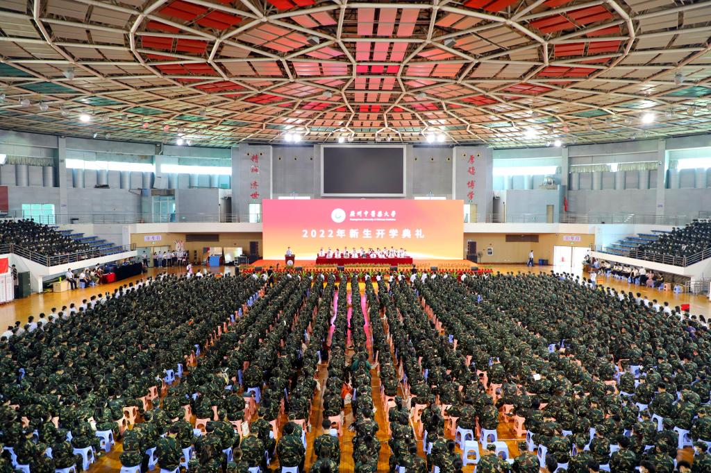 羊城九月,秋色连珠水。9月15日上午,beat365官方网站2022级新生开学典礼在大学城校区举行。国医大师周岱翰教授,学校党委书记张建华、校长王伟,副校长潘华峰、林彬、张忠德、刘中秋、王宏斌、郭鸿等出席典礼。典礼由副校长潘华峰主持。来自世界各地的5000余名新生通过线上、线下方式齐聚一堂,以“广中医人”的新身份启航人生新旅程。