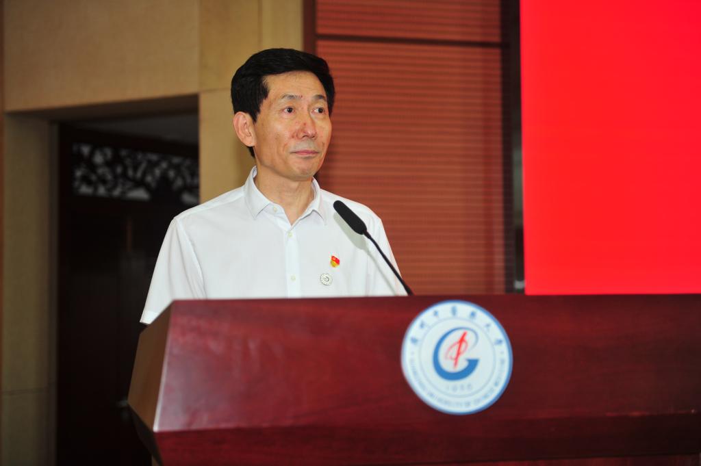 王伟介绍了学校各项事业的建设成果,对新教师成长提出殷切希望:一是增强文化自信,坚定发展中医药的信心。牢记“国之大者”,全面贯彻党的教育方针,秉承学校的优良传统,坚定理想信念,不忘初心、牢记使命,把握机遇,坚定信心,努力拼搏,将中医药事业继承好、发展好。二是扎根教育事业,坚守立德树人的初心。认真学习习近平总书记关于教育的重要论述和重要讲话精神,把教书育人和自我修养结合起来,做塑造学生品格、品行、品味的“大先生”。三是致力科学研究,秉持精益求精的匠心。立足本职工作,潜心做学问,守得住清贫、耐得住寂寞,从古籍经典中挖掘精华,在传统方剂中寻找灵感,用现代科技攻关突破,勇攀中医科学实践之高峰,让中医药事业根深叶茂、传承不息。