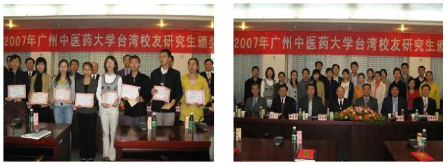 2007年12月10日,在我校刚刚隆重举办首届广东省中医药研究生学术论坛之际,学校20位研究生又以优异的成绩获得第二届beat365官方网站"台湾校友研究生奖学金",学校领导与设置研究生奖学金的台湾校友向获奖同学颁发了奖状与奖金。